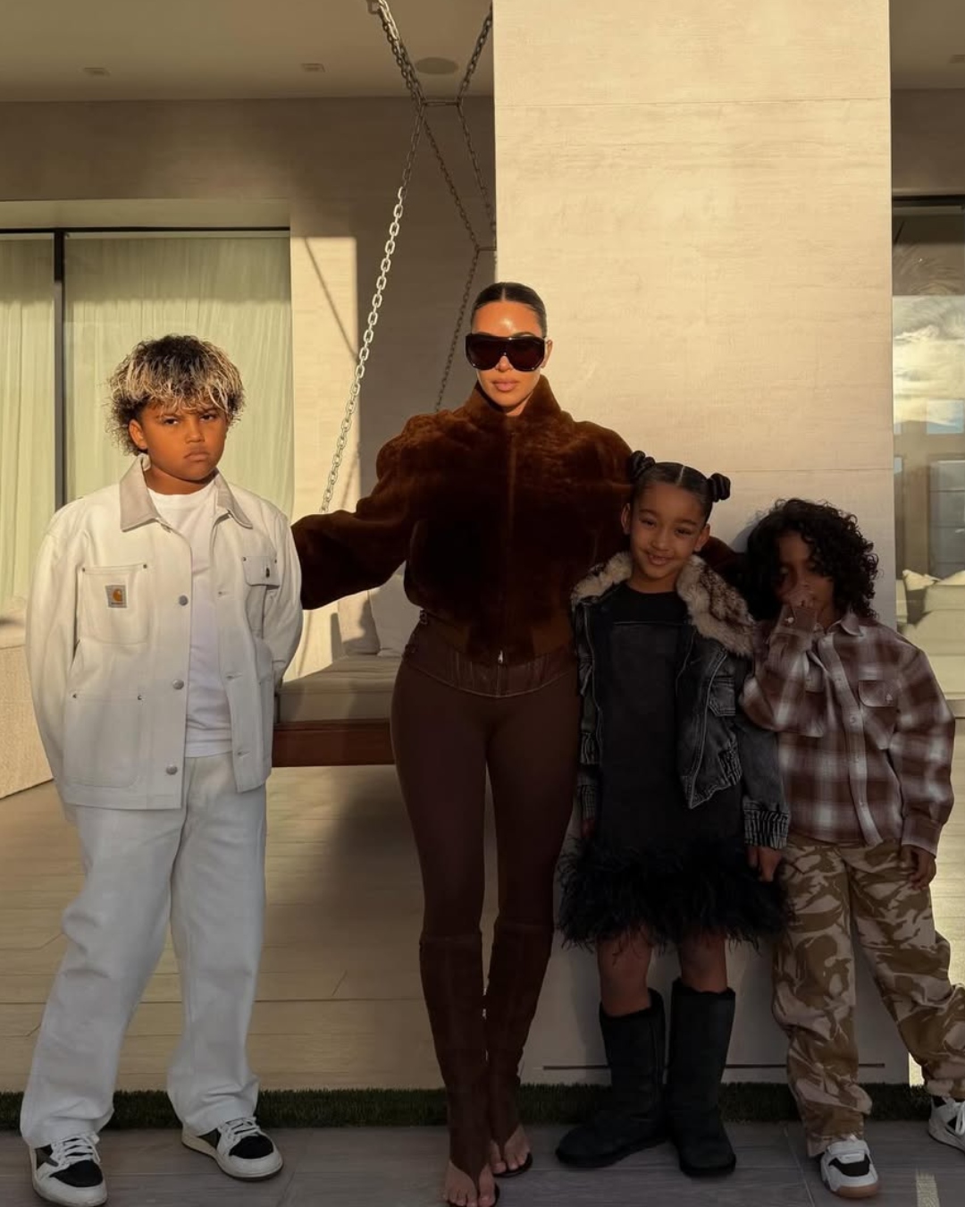 Nesta semana, a fundadora da Skims compartilhou uma sequência de fotos onde aparece ao lado de seus quatro filhos, North, 12 anos, Saint, 10, Chicago, 7 e Psalm, 6. Contudo, a mãe não conseguiu reunir todos os filhos em uma única imagem. Com bom humor, Kardashian comentou sobre o esforço em sua legenda: “Eu realmente tentei”.