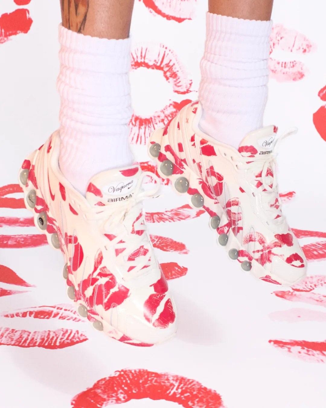 Patric DiCaprio, cofundador da Vaquera, explicou que “Romance é um código de marca importante na Vaquera”, e que cobrir o Dn8 com marcas de beijo resultou em um efeito lúdico e romântico que não compromete a funcionalidade da Nike.