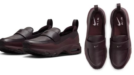 O tênis também tem um sistema de amortecimento revolucionário. Já a unidade Air é ampliada e aparente, surgindo em um marrom intenso, integrando de forma fluida um Swoosh metálico. O “Burgundy Crush” une o bem-estar de um calçado de alto desempenho à sofisticação visual de um loafer de luxo.
