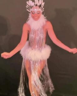 Para coroar a produção, ela adicionou um boá de plumas em degradê, que conferiu movimento e textura ao visual, evocando tanto o luxo clássico quanto a energia vibrante do Carnaval. Entretanto, a fusão de pedrarias, plumas e brilho consolidou esse traje como uma mistura de fantasia e sofisticação.