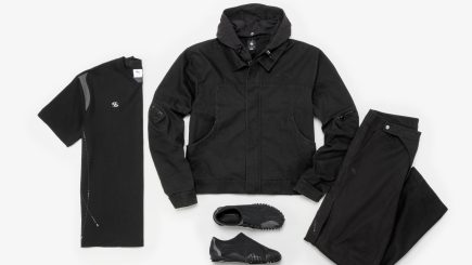 As peças que acompanham essa linha misturam um estilo urbano à funcionalidade esportiva, apresentando uma paleta de cores predominantemente preta.
