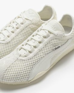 A essência da coleção se manifesta no relançamento do sneaker H-Street. Inspirado no PUMA Harambee do início dos anos 2000, o modelo ganha uma releitura minimalista pelas mãos de Guizio. Além disso, a paleta de cores é discretamente neutra, e a textura é explorada através de uma combinação tátil e elegante de mesh e camurça felpuda. Mas, para permitir a customização, o calçado acompanha dois pares extras de cadarços em tons contrastantes – marrom e verde-neon.
