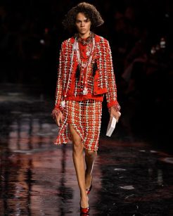 Ademais, a reinterpretação do clássico terno de tweed Chanel feita por Blazy já apresentava uma visão moderna e refrescante. No entanto, o toque mais divertido e jovem trazido por Tyla elevou ainda mais o fator “It-girl” dessa produção.