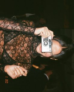 No interior da celebração, Bruna trocou o visual inicial por uma proposta ainda mais ousada: um conjunto transparente de renda preta combinado a uma meia-calça estampada com o monograma clássico da Gucci. A produção, marcada pela sensualidade, ecoou diretamente referências da coleção Cruise 2026, apresentada em maio em Florença.