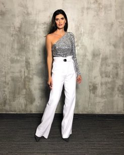 O brilho segue indispensável. Além dos bordados, os paetês aparecem em tamanhos maiores e com acabamentos perolados, garantindo impacto visual e um toque glamouroso à produção.