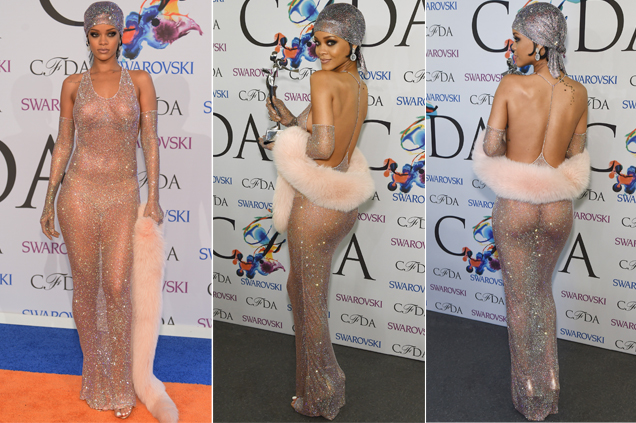 A entrega da premiação de moda do Council of Fashion Designers of America (CFDA) aconteceu na noite desta segunda-feira (02.06). Além da escolha dos estilistas mais importantes para a moda nos Estados Unidos, a premiação reconheceu a cantora Rihanna como ícone fashion — ela fez jus ao título e vestiu um figurino transparente, que deixava à mostra os seios e a calcinha, assinado pelo estilista Adam Selman.