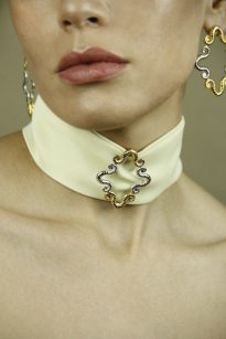 A designer carioca Flávia Brito ressignifica materiais reciclados na joalheria autoral brasileira, combinando técnicas de moldes 3D e ourivesaria tradicional. Sua coleção inclui brincos, colares e anéis em prata 925 ou latão, banhados a ouro amarelo ou ródio, destacando volumes e texturas inéditas.