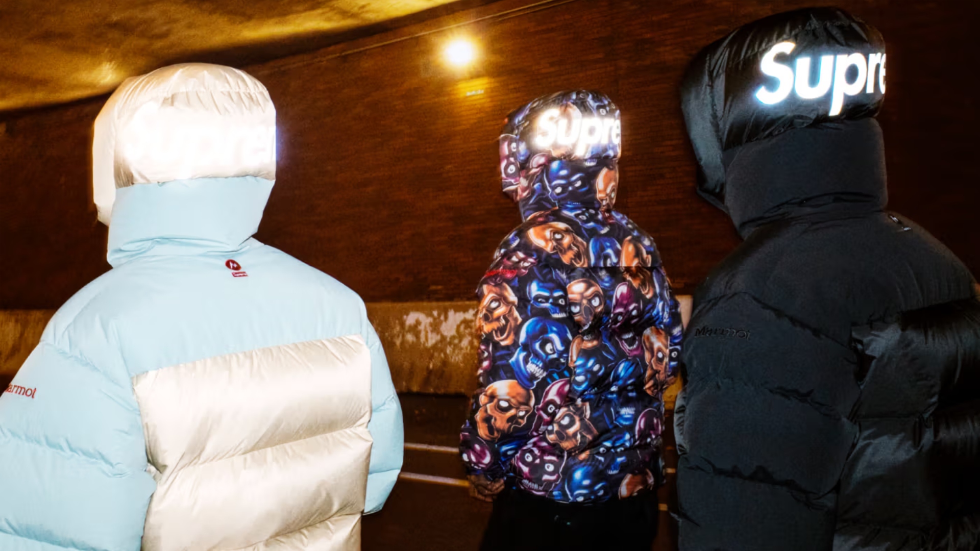 A Supreme x Marmot Fall 2025 reforça a conexão entre streetwear e moda técnica com uma cápsula pensada para enfrentar o frio intenso sem abrir mão de identidade visual. Logo de início, a collab deixa claro seu propósito: unir o espírito urbano da Supreme ao know-how outdoor da Marmot, com o Skull Pile multicolorido da Liquid Blue como fio condutor estético da coleção.
