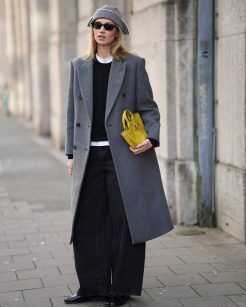 Para quem não abre mão do minimalismo, a calça de corte reto com inspiração nos anos 1990 é o investimento mais seguro. O diferencial de 2026 está no ajuste! O modelo deve ser levemente solto ao longo da perna, sem marcar o joelho, terminando exatamente sobre o peito do pé. É a peça-chave para o visual “off-duty” das modelos e celebridades, funcionando como uma tela em branco para acessórios de peso.