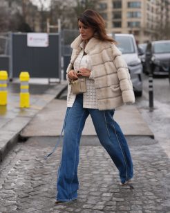 Além disso, marcas como Loewe e Chloé têm reforçado esse modelo como a alternativa perfeita para substituir a calça social. Assim, unem o despojamento do jeans à elegância de uma pantalona.