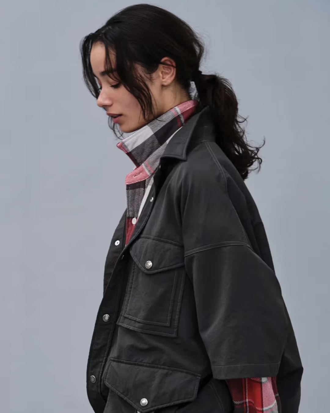 Ao mesmo tempo, referências dos anos 90 surgem de forma natural. Elementos do grunge aparecem nas modelagens soltas e no styling despretensioso, criando uma estética relaxada, mas ainda funcional. Tudo parece pensado para acompanhar a rotina real, sem excessos ou rigidez.