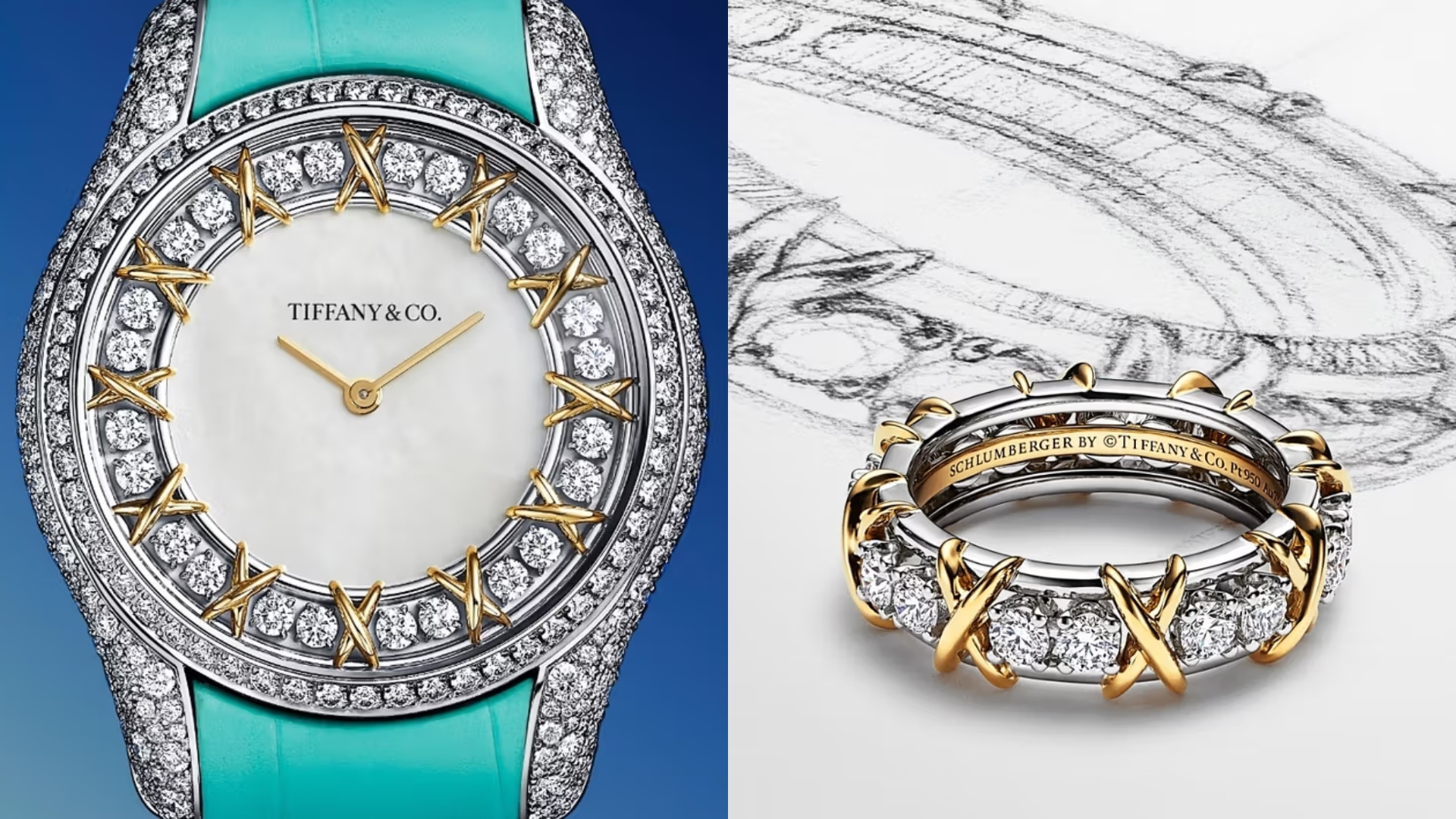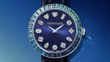 Por fim, a Maison apresenta o Sixteen Stone Mother-of-Pearl, inspirado em um design de 1959 de Jean Schlumberger que remete ao ponto-cruz. O modelo funciona como uma joia cinética, possuindo um anel externo de “Xs” em ouro e diamantes. Ele gira livremente ao redor do mostrador de madrepérola conforme o movimento do pulso. Com uma caixa cravejada por mais de 400 diamantes e fundo gravado com motivos florais, o relógio utiliza um movimento de quartzo de alta precisão. Além disso, tem uma pulseira em tom Tiffany Blue.