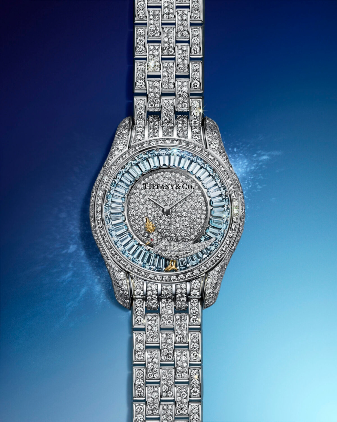 A extravagância e a criatividade continuam fortes nas peças contemporâneas da coleção. O foco principal recai sobre os relógios Bird On A Rock, motivo concebido pelo designer Jean Schlumberger nos anos 60. Para traduzir o espírito lúdico do pássaro no mundo da alta relojoaria, a Tiffany criou sistemas rotativos inovadores, incluindo um turbilhão voador que permite que o pássaro “deslize” sobre o mostrador. Estas peças de edição limitada exibem pedras centrais robustas, protegidas sob o cristal como segredos preciosos.