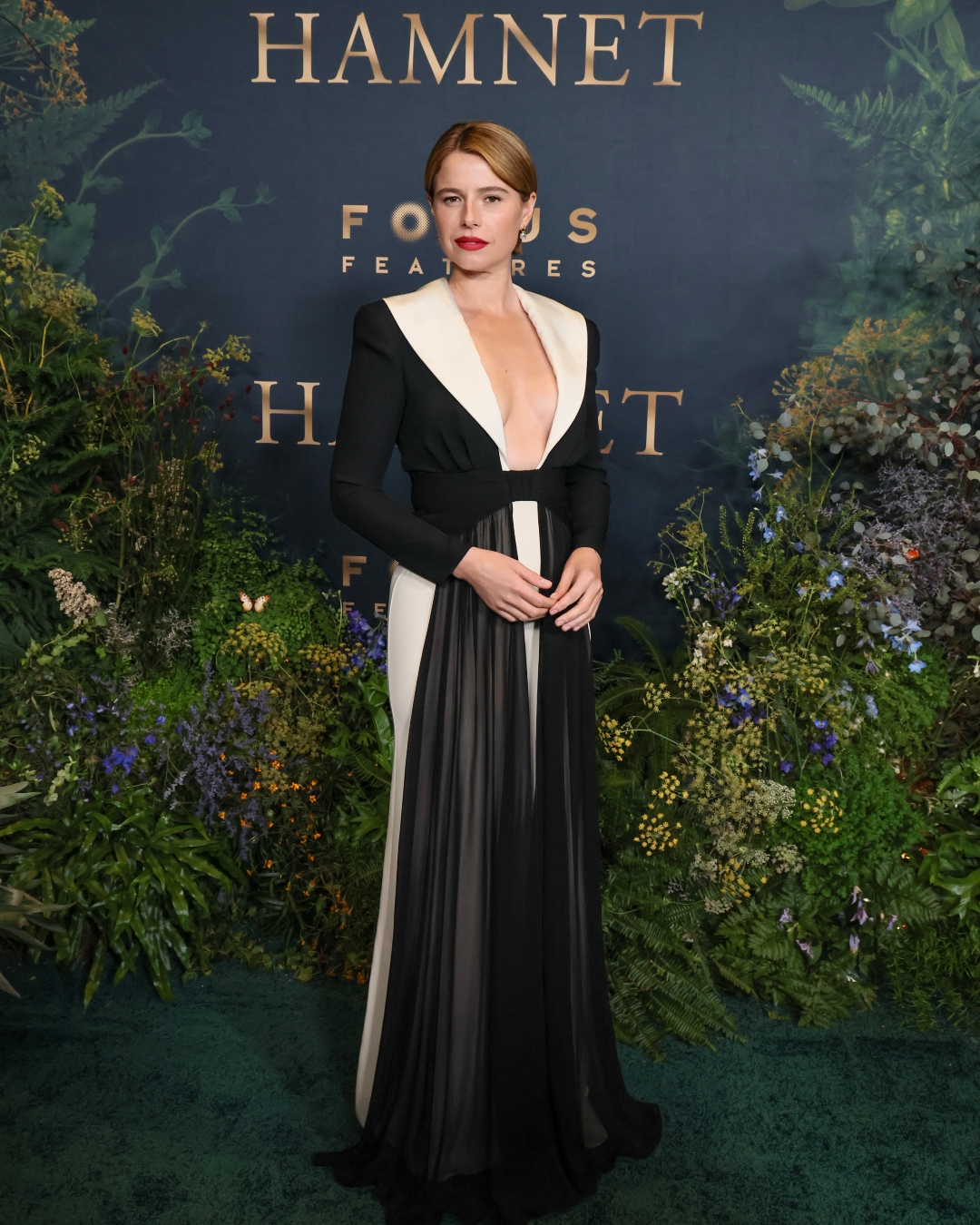 Jessie Buckley acompanhou sua colega de elenco Isabela Merced na estreia do filme “Hamnet” em Los Angeles na última terça-feira, 18. Para o evento, ela apostou em um vestido Valentino da coleção Primavera 2026.