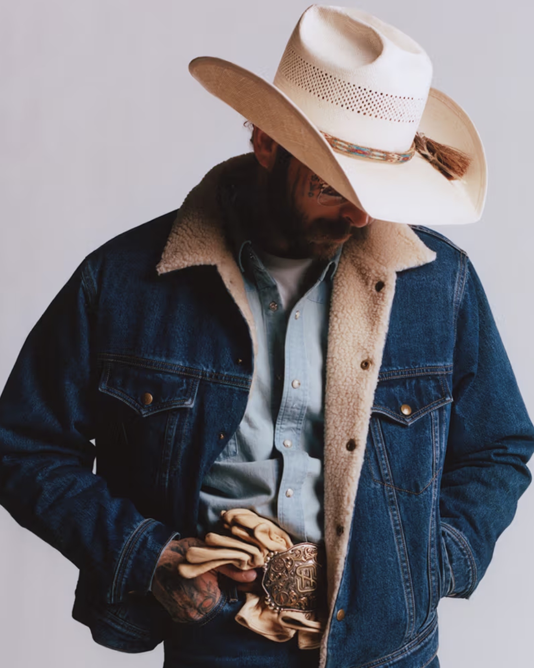 A coleção traduz o Americano moderno, combinando o charme rústico do oeste americano com a precisão artesanal da moda de luxo. Entretanto, cada peça foi pensada para durar, com cortes limpos, tecidos encorpados e um visual naturalmente desgastado, do jeito que Post Malone gosta.